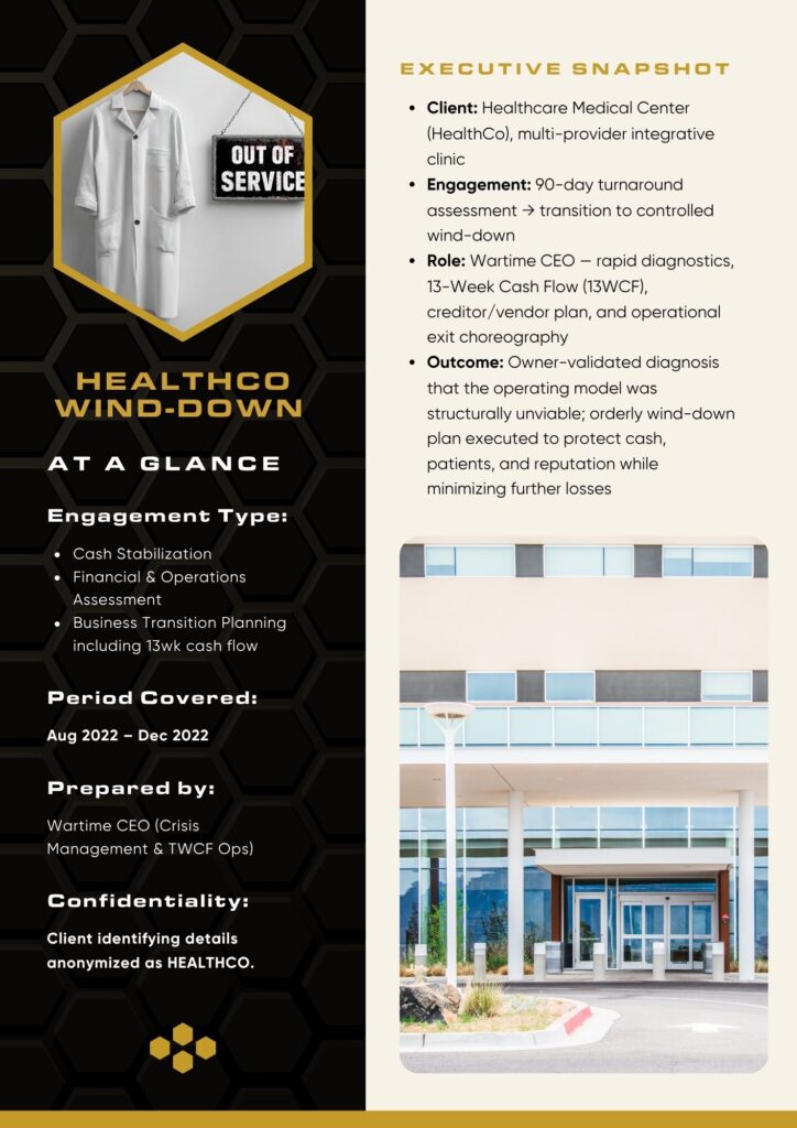 - Crisis management and cashflow stabilization