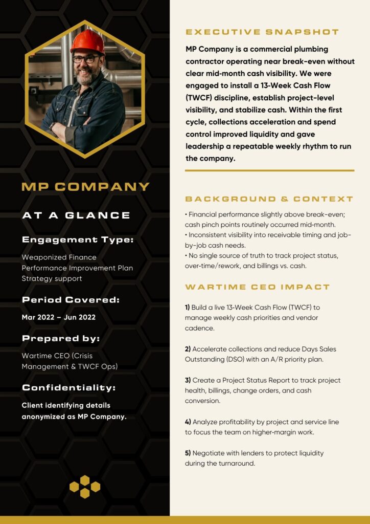 We weaponize proven Private Equity and consulting playbooks for owner-operators. Ruthless focus on what moves stakeholder value. No noise. No fluff.